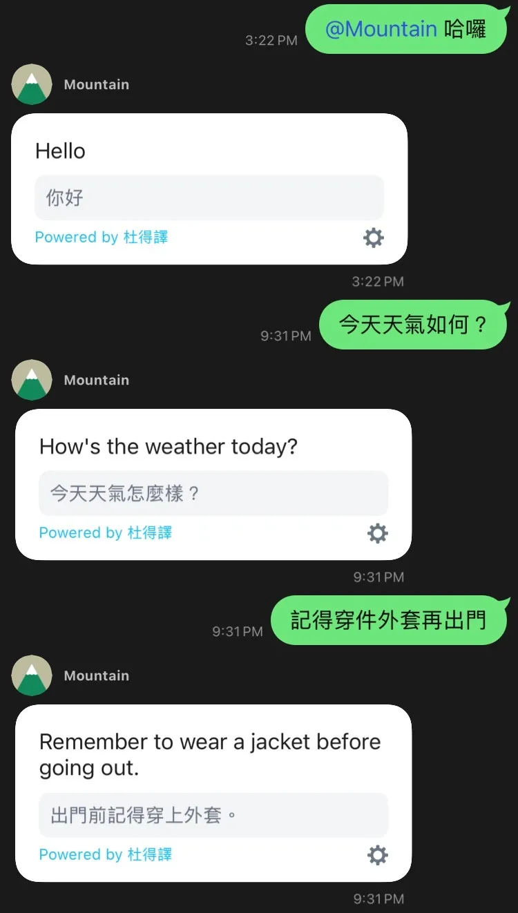 - 無縫群組使用:直接在群組中使用,所有成員都能看到翻譯結果