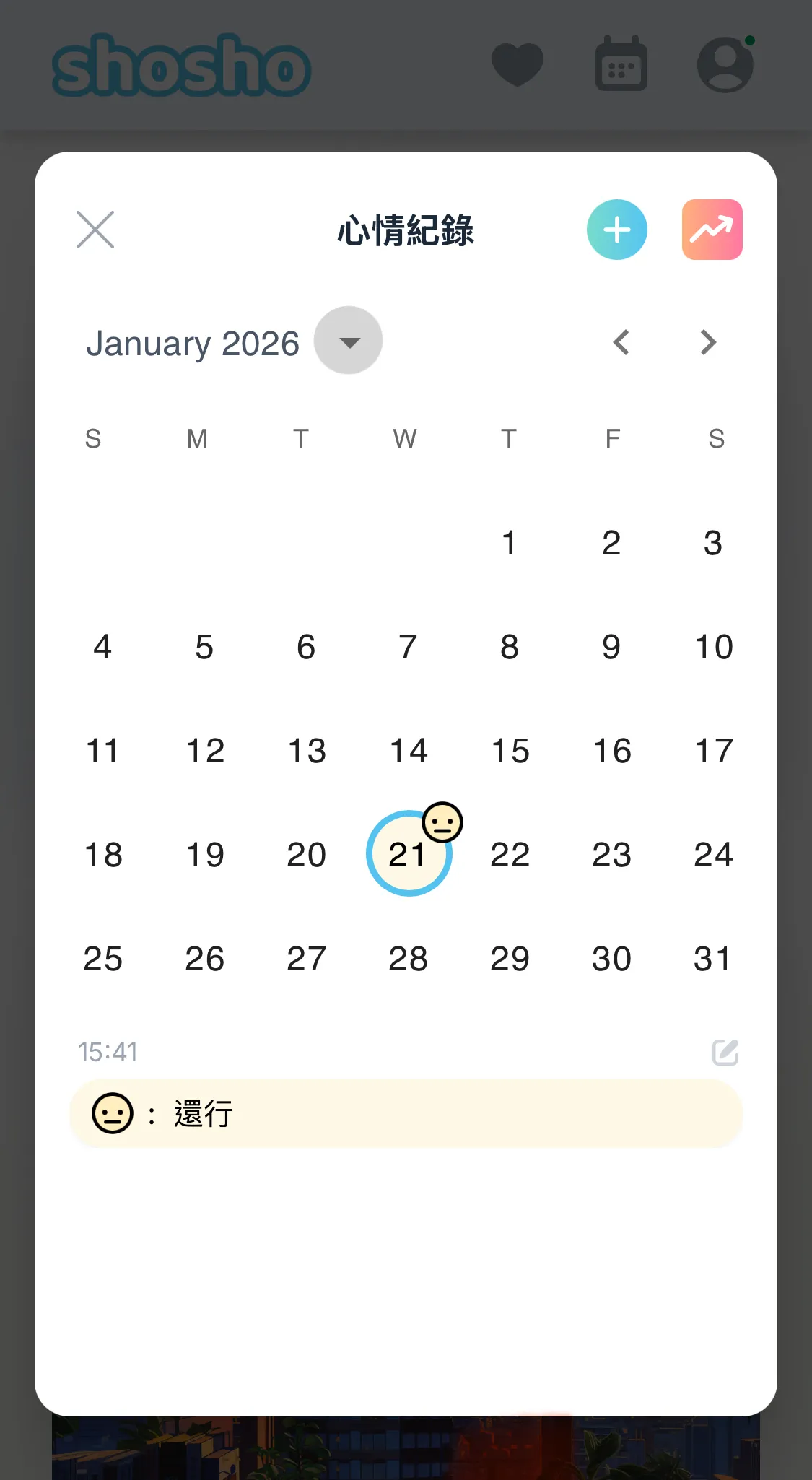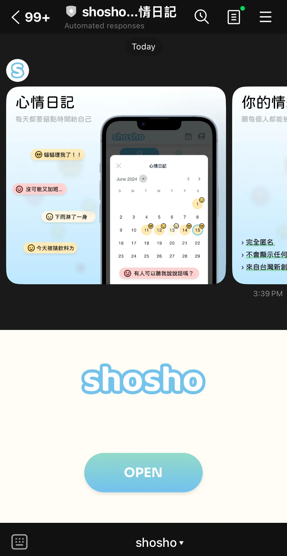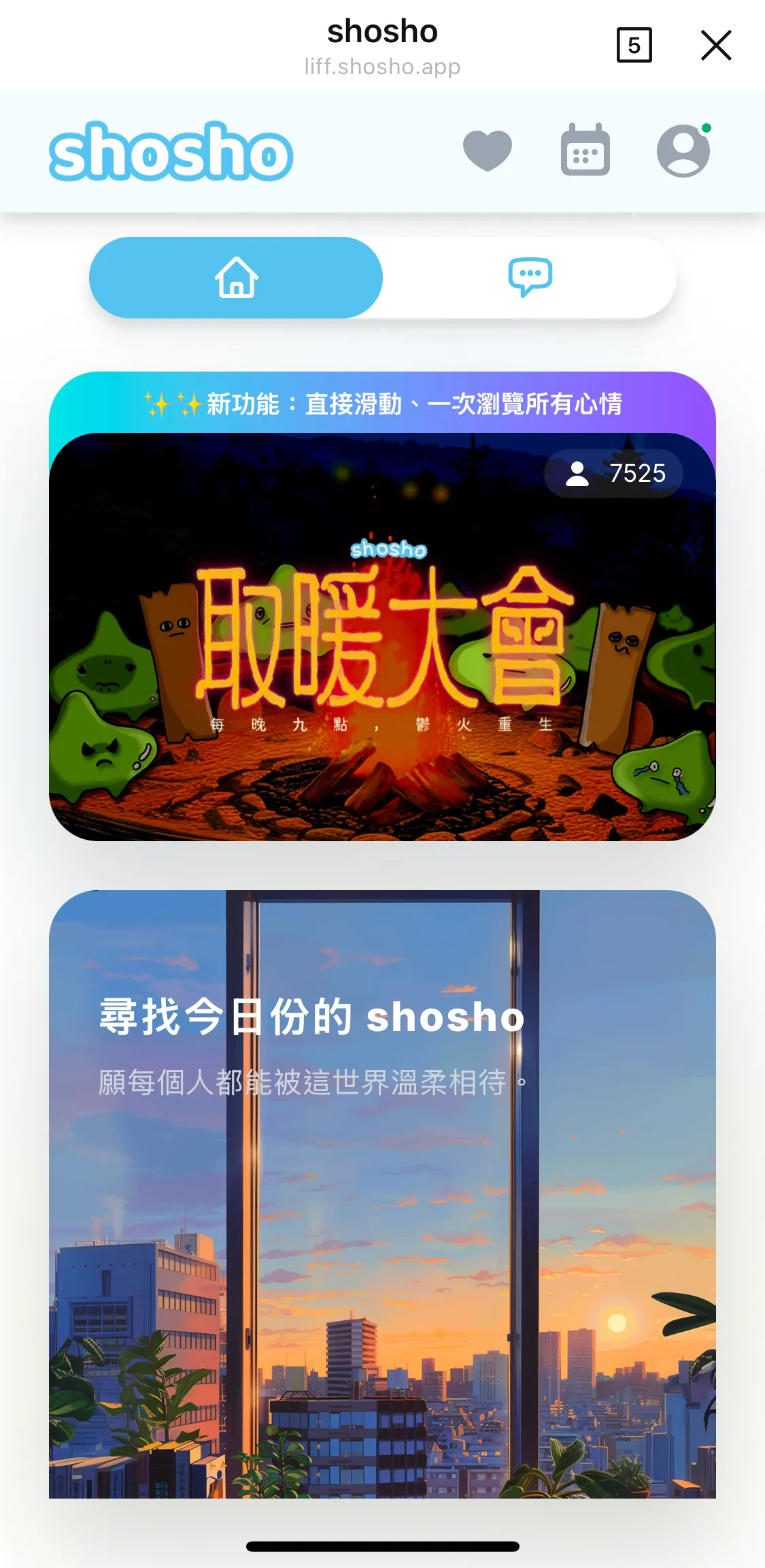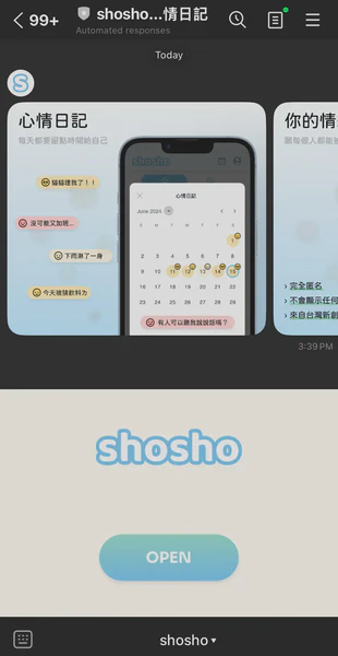 shosho是台語「秀秀(惜惜)」的諧音,設計理念就是要成為你的溫暖陪伴。它結合了心情日記、匿名樹洞、社群取暖三個功能。