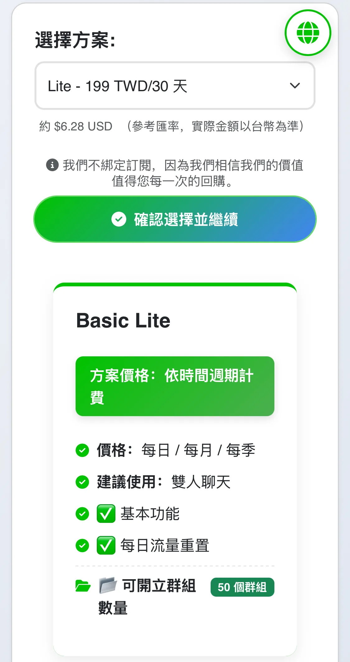 | 群組聊天 | 在多人群組中自動翻譯,促進跨國交流 |